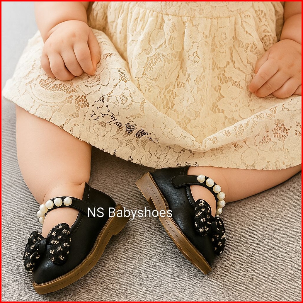 Sepatu Dokmart Anak Perempuan 1-3 Tahun Flatshoes Motif Pita Bunga Tali Mutiara