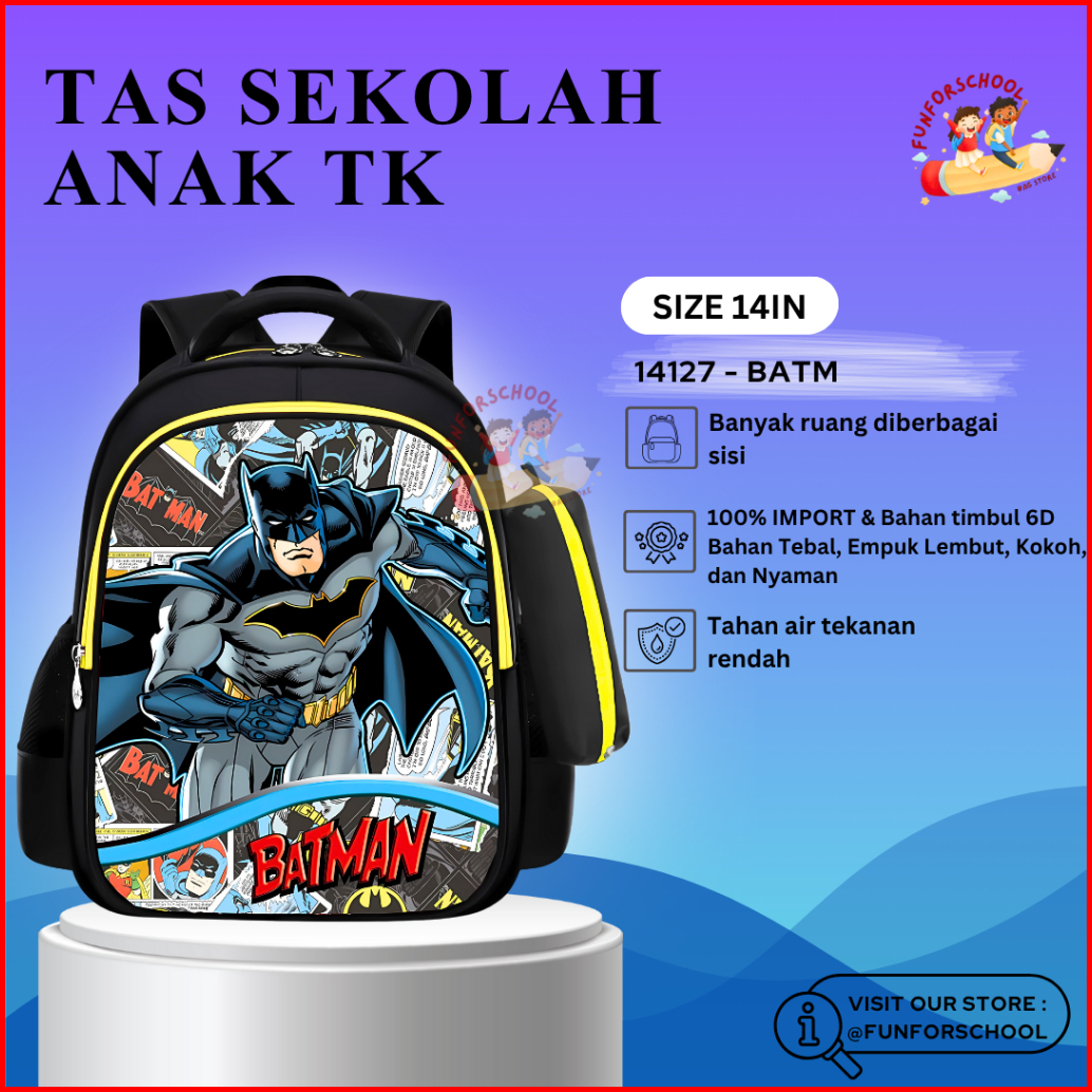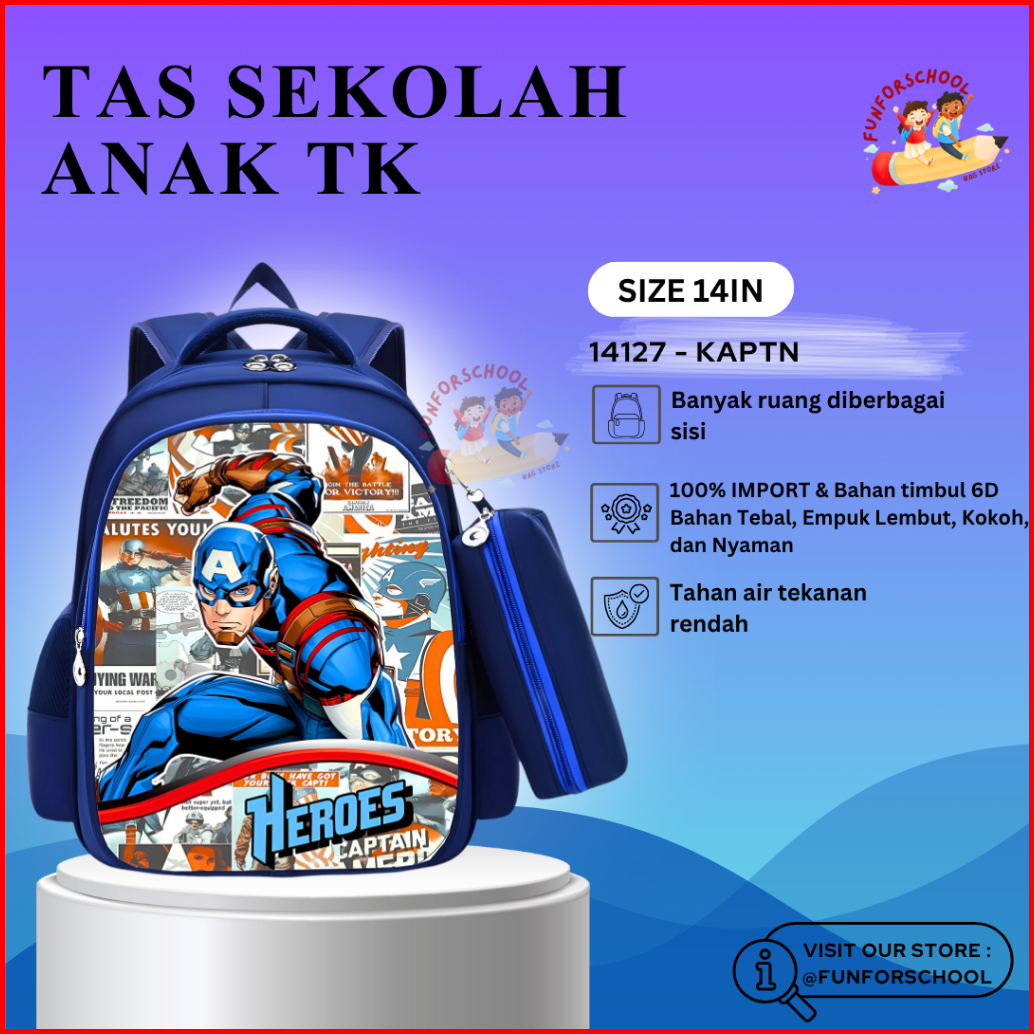 Ffs Ransel Tas Sekolah Tk Paud Anak Laki-laki Import Premium Superhero Nilon Premium 6d Kuat Nyaman Kokoh Size 13in
