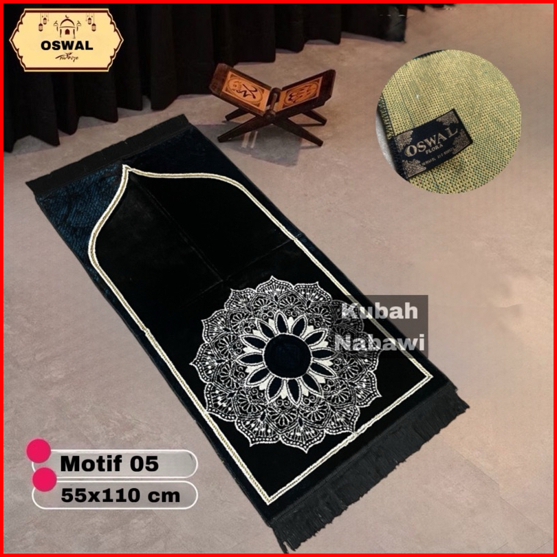 Oswal Flora 55x110 Cm Dewasa Sajadah Turki Beludru Halus Tebal Empuk Premium Motif Polos Minimalis