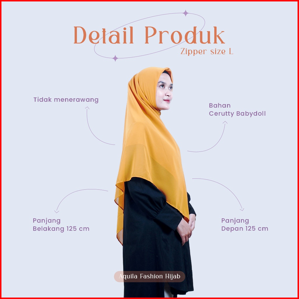 Kerudung Bergo Fatimah Segiempat Zipper Jilbab Muslim Wanita Non Pet Resleting By Aquila Fashion Hijab