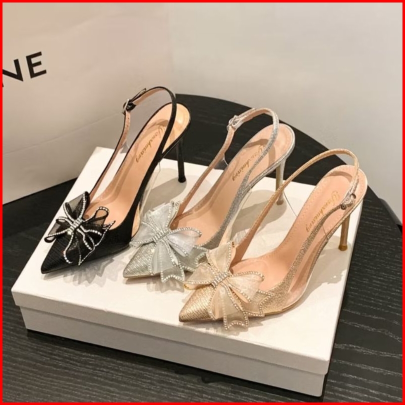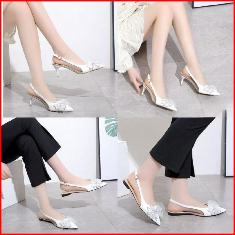 Sendal Sepatu Wanita Hak Tinggi High Heels Bapau Runcing Aksesoris Cantik Terbaru Kondangan R10