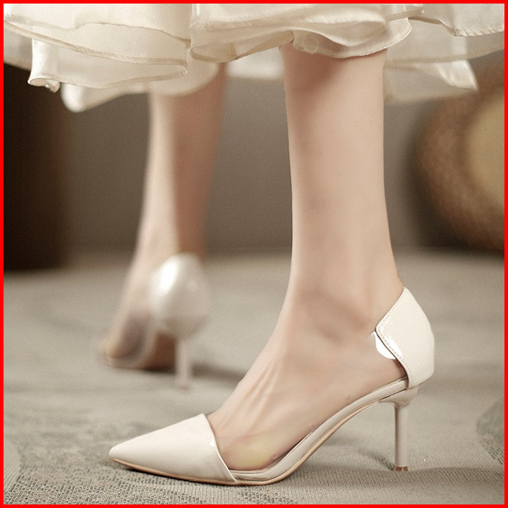 Anp Fashion Store - Sepatu High Heels Hak Runcing Stiletto 7cm Bahan Suede Gloss Mika Bening Polos Ujung Lancip Sandals