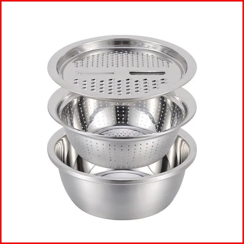 Baskom Parutan Stainless Set 3 In 1 - Parutan Serbaguna Pengiris Sayuran Buah Saringan Multifungsi