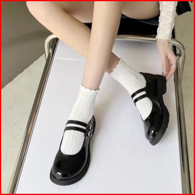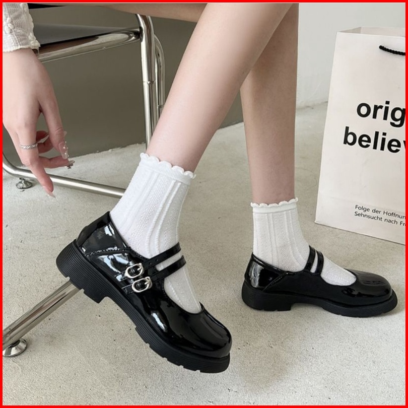 Sepatu Wanita Loafers Docmart Flat Terbaru Import Premium Quality 8045 Mary Janes Platform Shoes Gesper Hitam Glosy Sepa