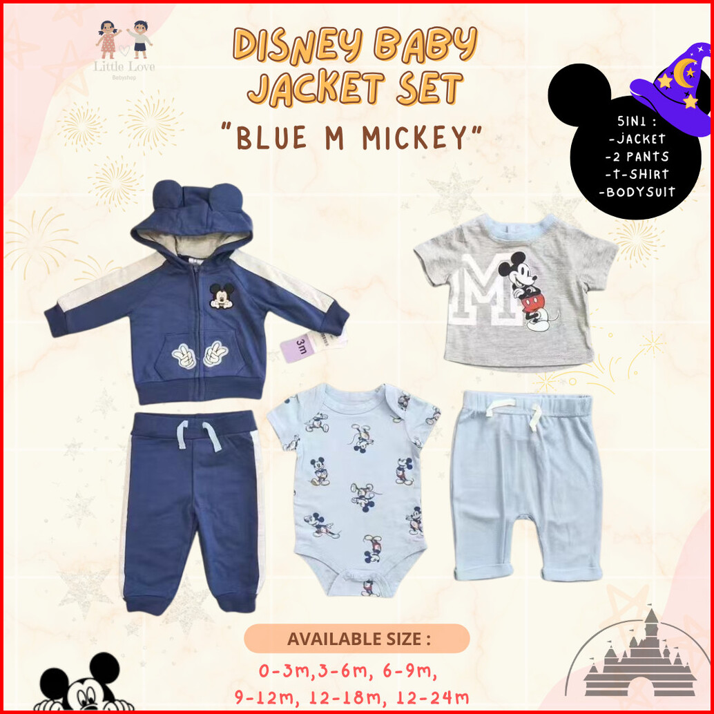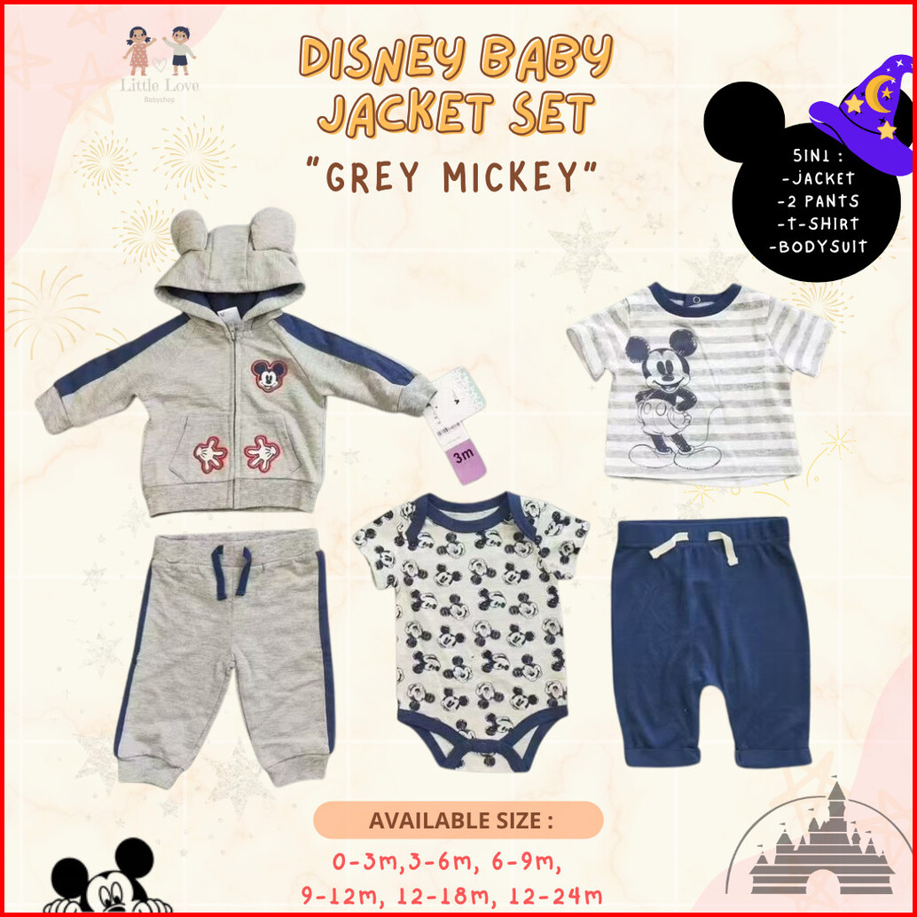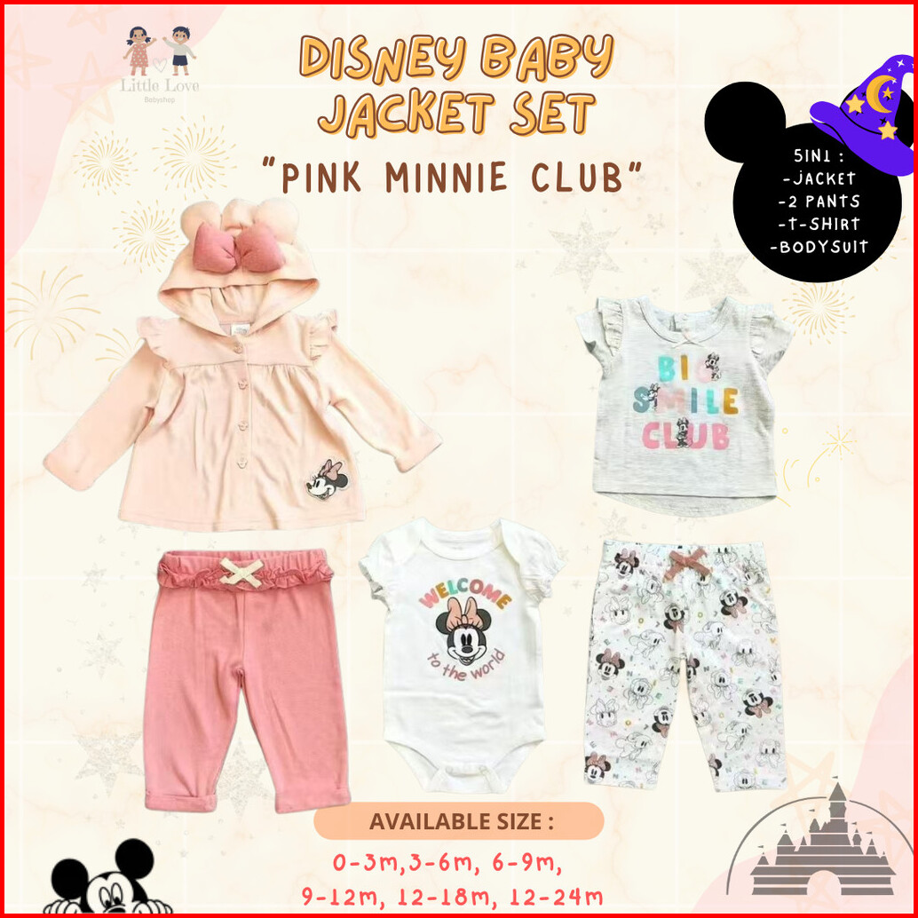 Disney Baby Jacket Set 5in1 Jaket Bayi Setelan Mickey Minnie 0-24 Bulan Setelan Disney Baby Premium Jaket Romper Legging