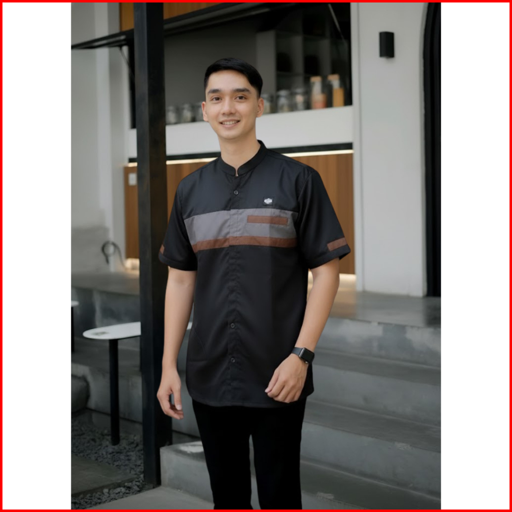 Baju Koko Couple Ayah Dan Anak Laki-laki Harga Terpisah Kemeja Kurta Kerah Mandarin Lengan Pendek Bahan Toyobo Seragam H