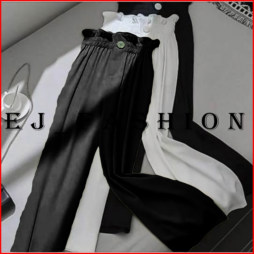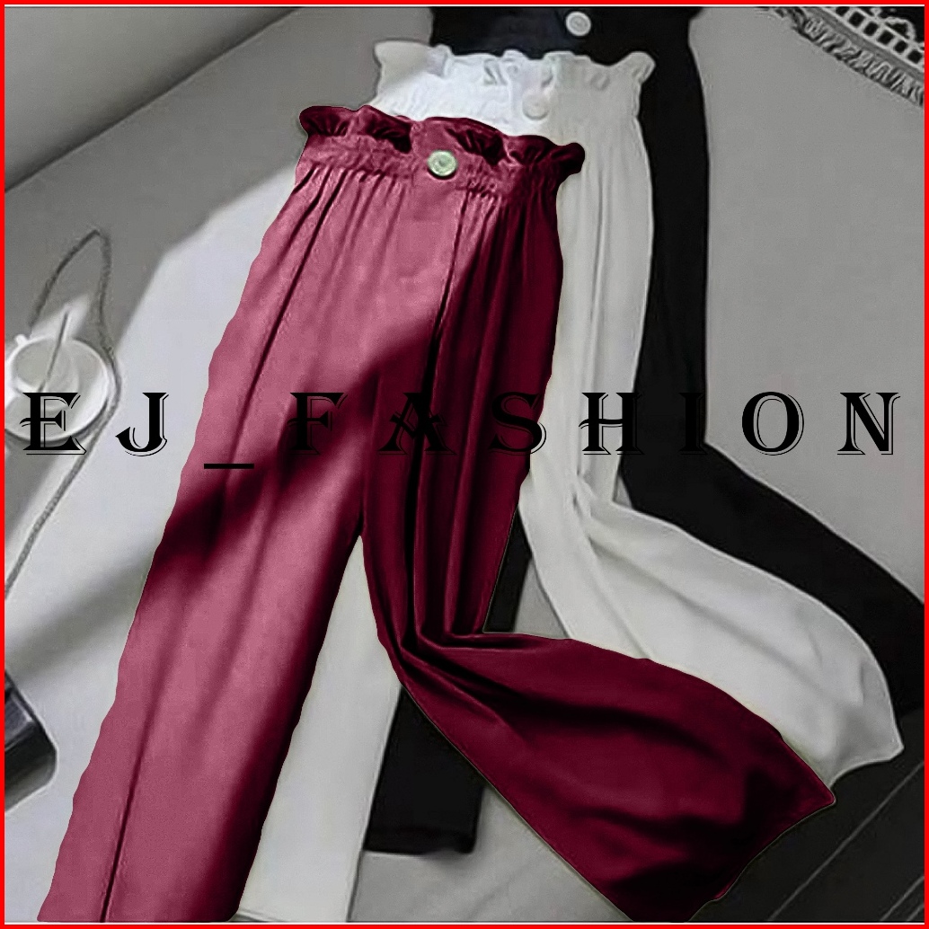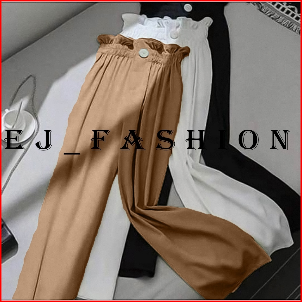 Ej Fashion Celana Wanita Kulot Panjang Highwaist Kerut Susun Kancing 1 Terbaru 2024 Kekinian Style