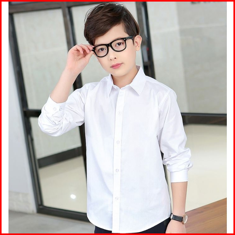 Anak-anak Putih Kemeja Kasual Warna Solid Katun 100 Kemeja Putih Lengan Panjang Turn-down Kerah Anak-anak Kemeja Untuk A