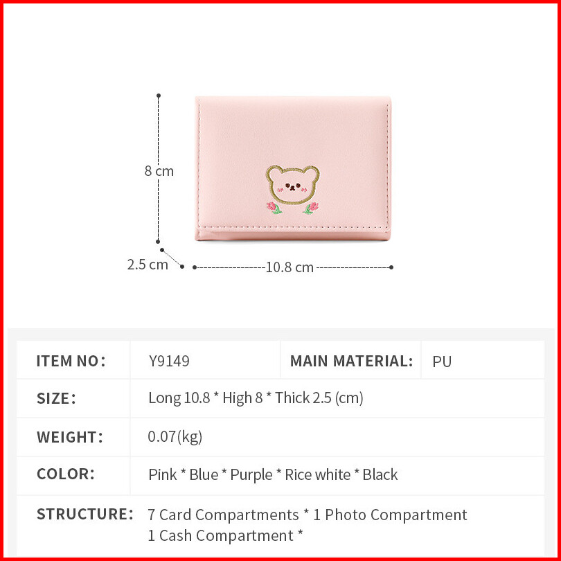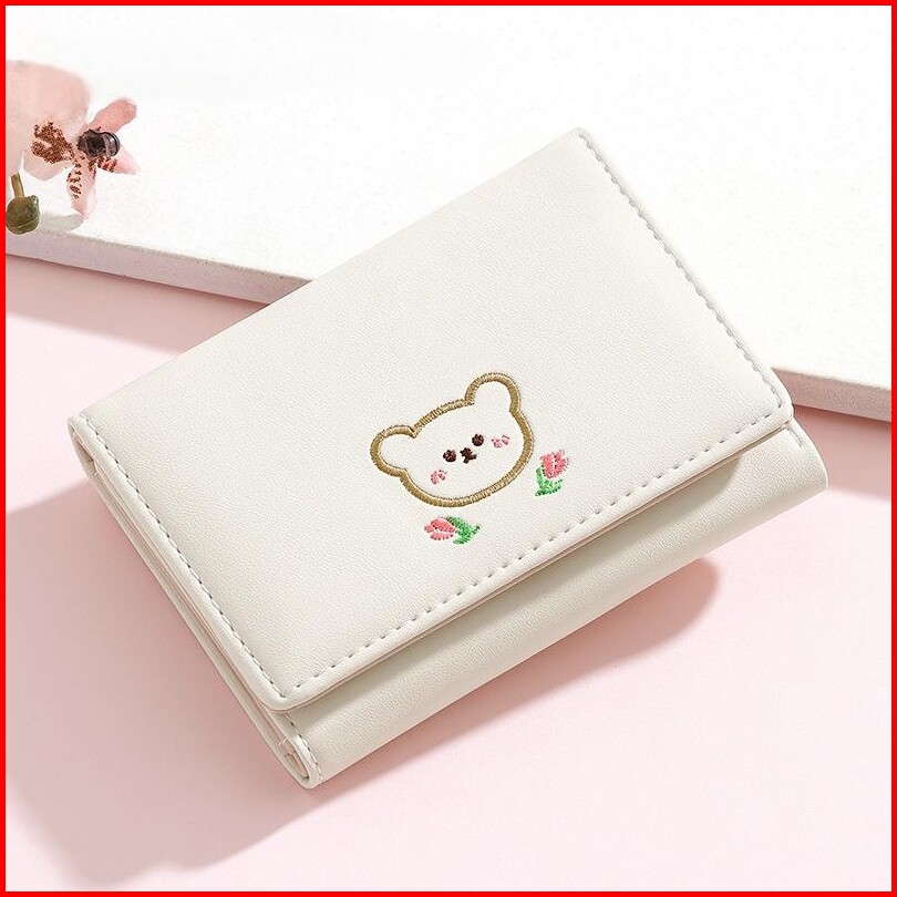 Dompet Lipat Wanita Kulit Jepang Bordir Dompet Kartu Wanita Dompet Koin Dompet Lipat Wanita Mahasiswa Dompet Pendek Fash