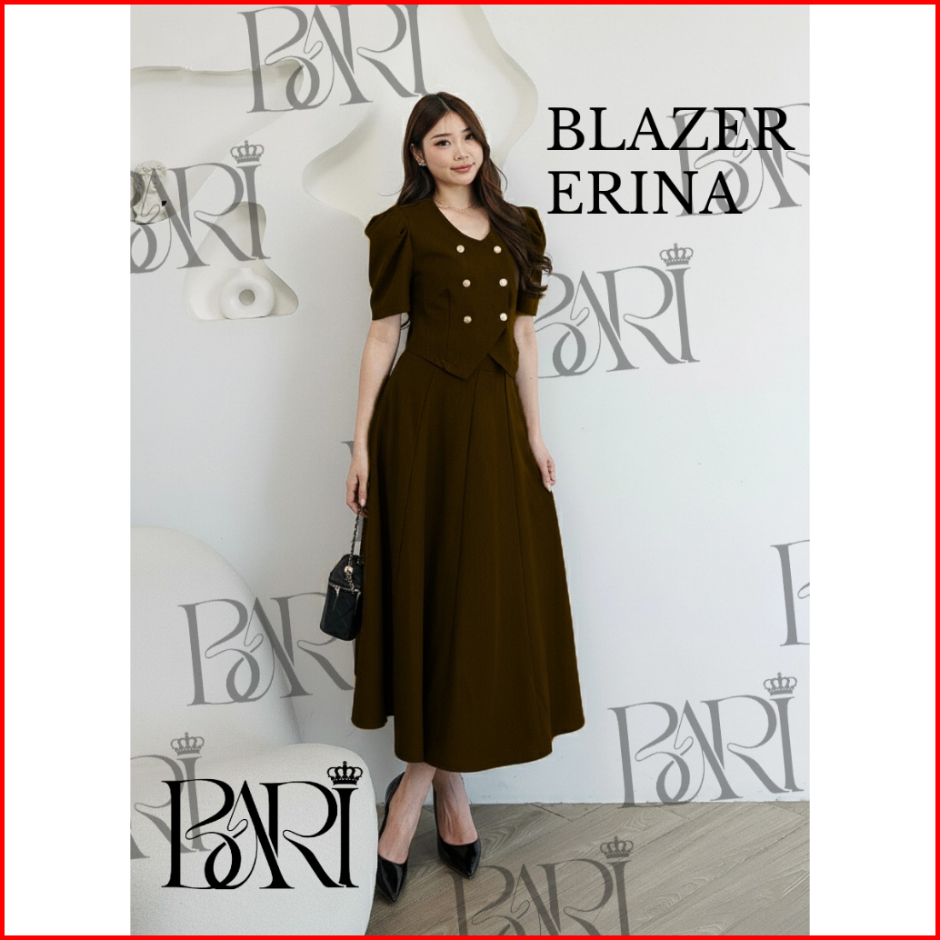 Baristore.id Erina Blazer Atasan Aja Blazer Korean Cropped Puff Sleeve Double-breasted Blazer