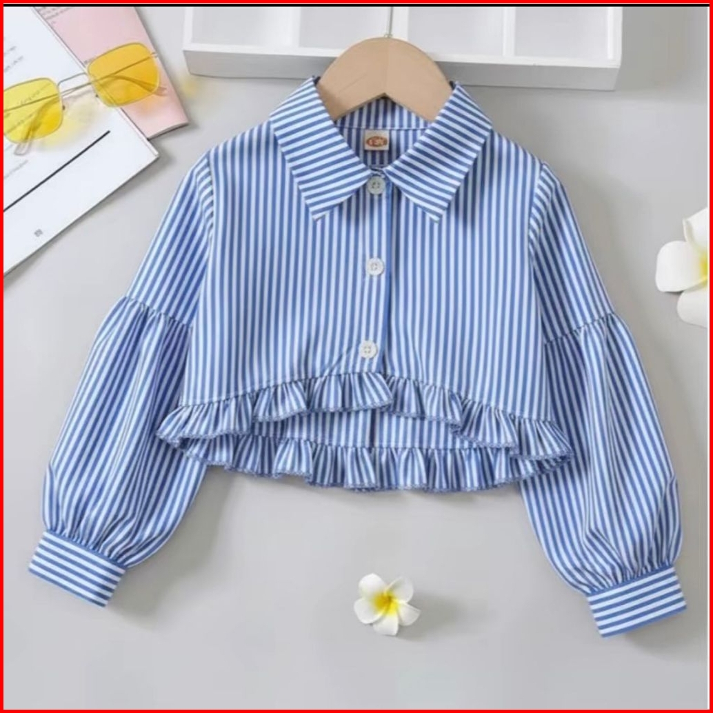 Hanny-kemeja Salur Anak Perempuan Usia 5-12 Tahun Atasan Anak Terbaru Kemeja Salur Anak Model Crop