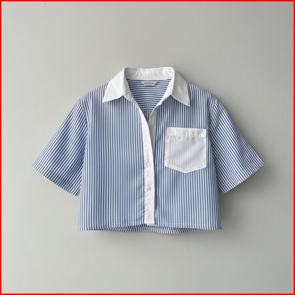 Kemeja Crop Salur Anak Perempuan 516 Tahun Atasan Casual Korea Style Kekinian