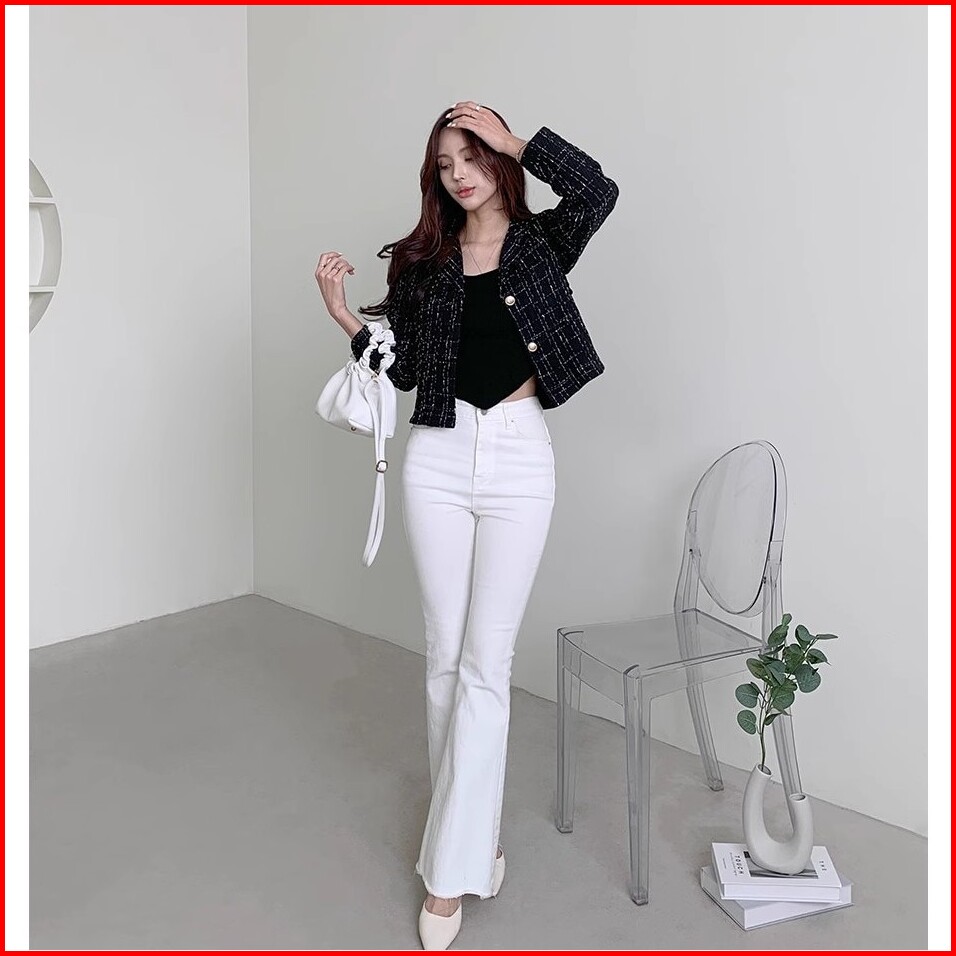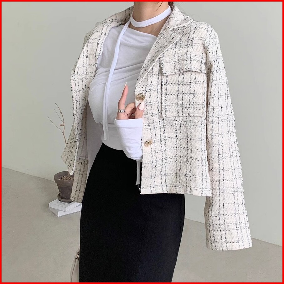 Qlioo Jaket Lengan Panjang Terbaru Untuk Wanita Jaket Kotak-kotak Pendek Jaket Lengan Panjang Gaya Korea