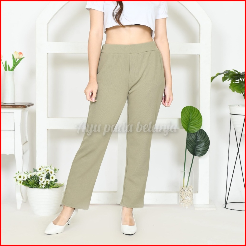 Nana Pants Celana Panjang Wanita Knit Rib Japan Model Standar Ukuran Jumbo Full Karet
