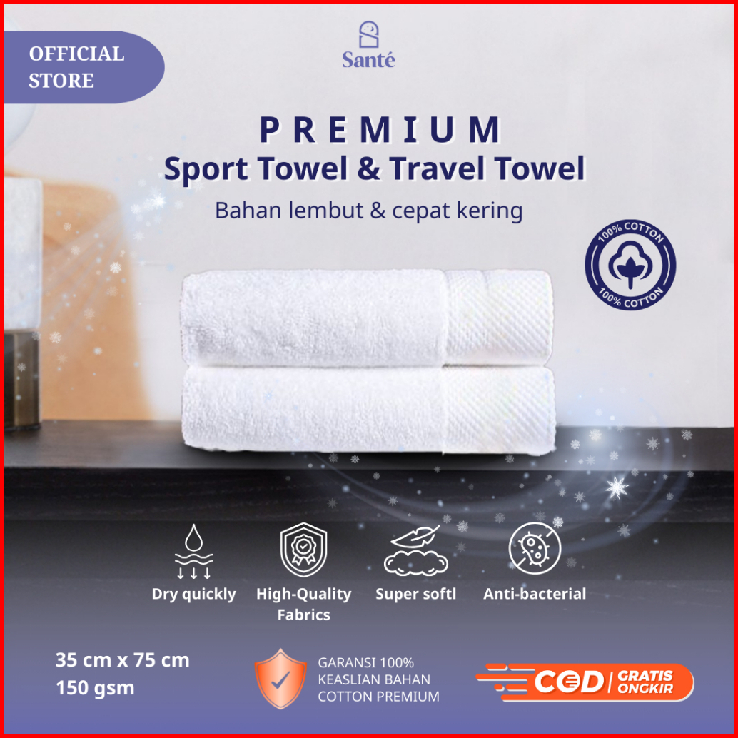 Sante - Sport Towel - 35x75cm - Handuk Travel Handuk Olahraga Cepat Kering Ringan Stylish