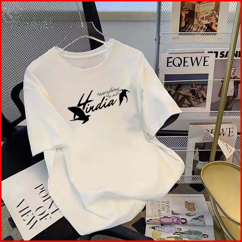 Yesgirl Korea Style Camar Print Kaos Kasual Longgar Atasan Wanita Kekinian Kaos Oversized Baju Atasan Wanita Terbaru 100