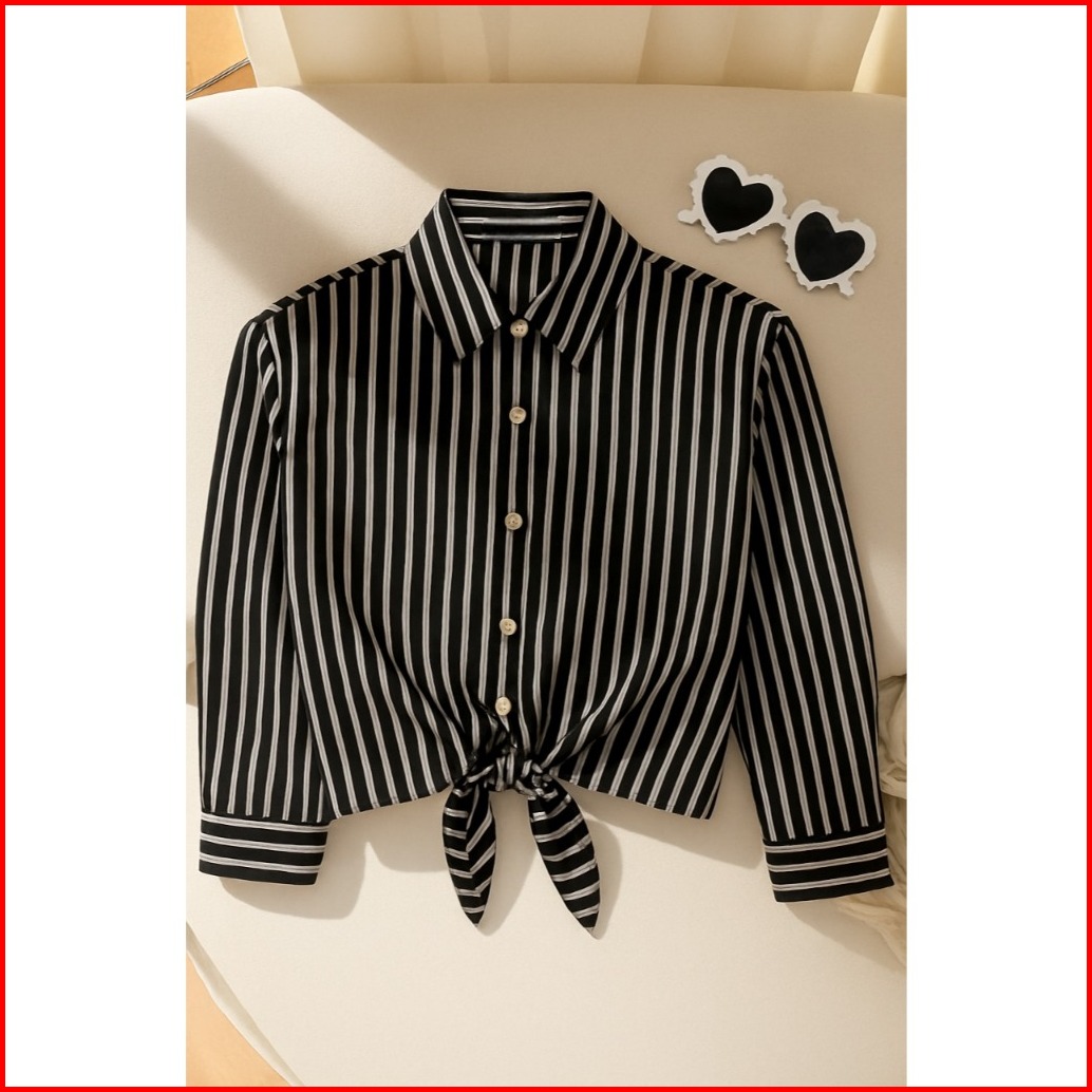 Kemeja Atasan Anak Perempuan Bahan Katun Salur Premium Korean Style Usia 516 Tahun - Terbaru