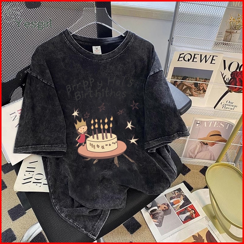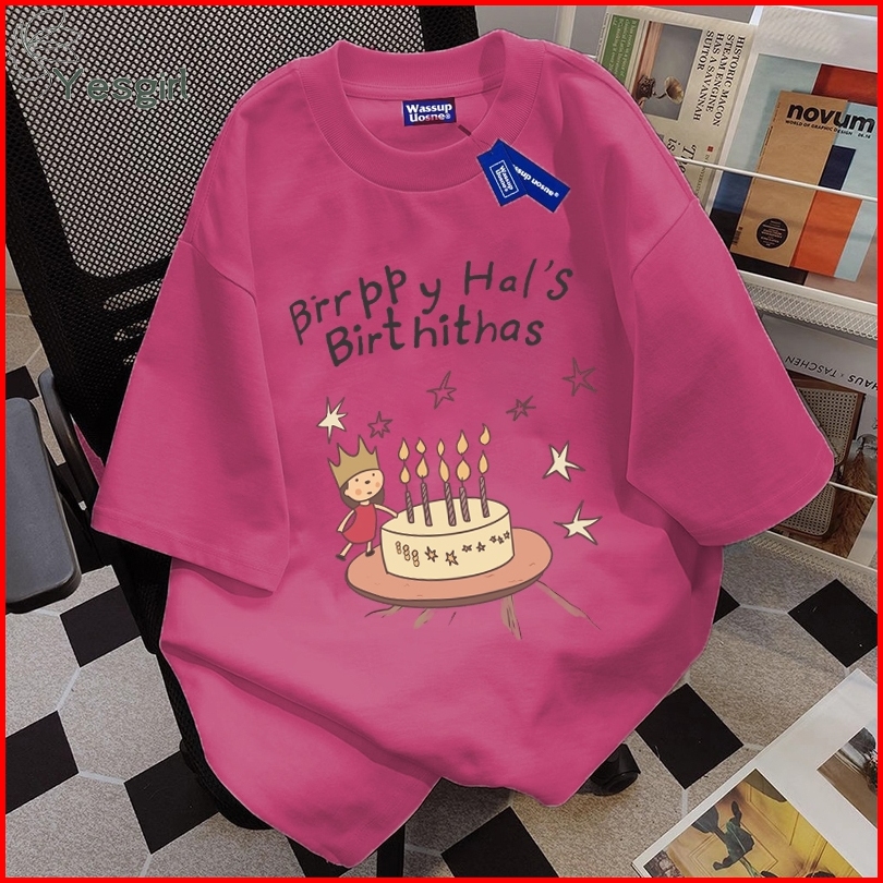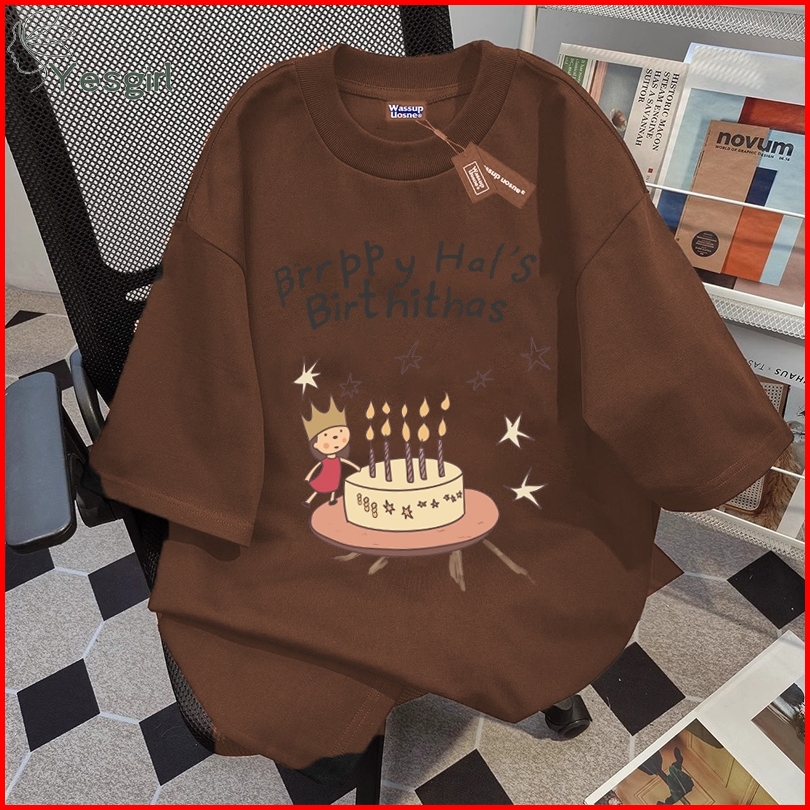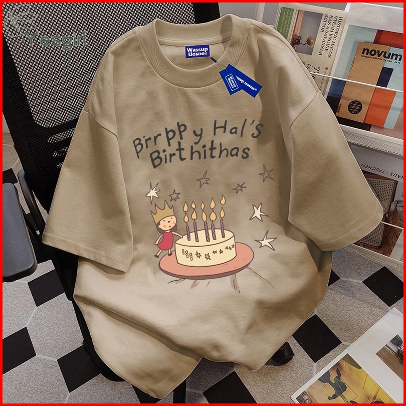 Yesgirl Korea Style Kue Ulang Tahun Print Kaos Kasual Longgar Atasan Wanita Kekinian Kaos Oversized Baju Atasan Wanita T