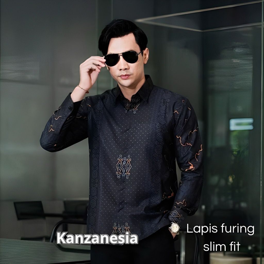 Kz- Batik Bango Hitam Hb-269 Atasan Baju Kemeja Batik Full Furing Premium Pria Cowok Laki Laki Lengan Panjang Pendek Sli