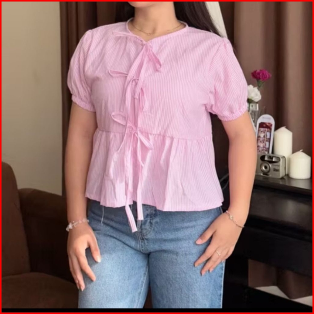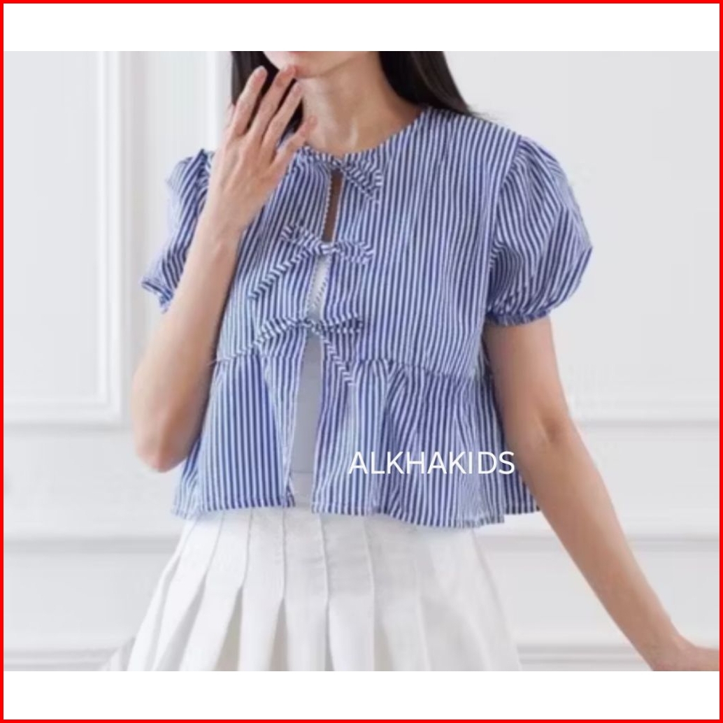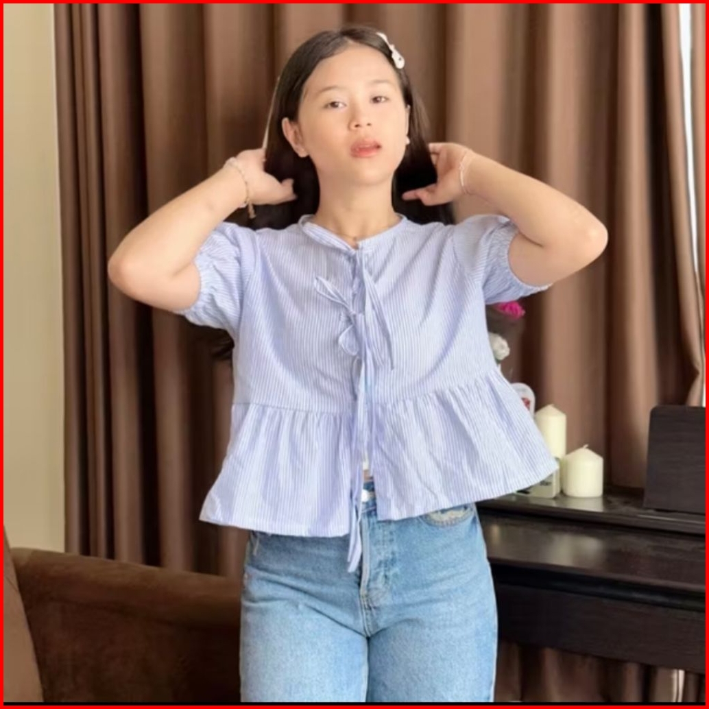 De Outfit Atasan Kemeja Pendek Anak Perempuan Stripe Salur Usia 1 Sampai 12 Tahun Korean Style