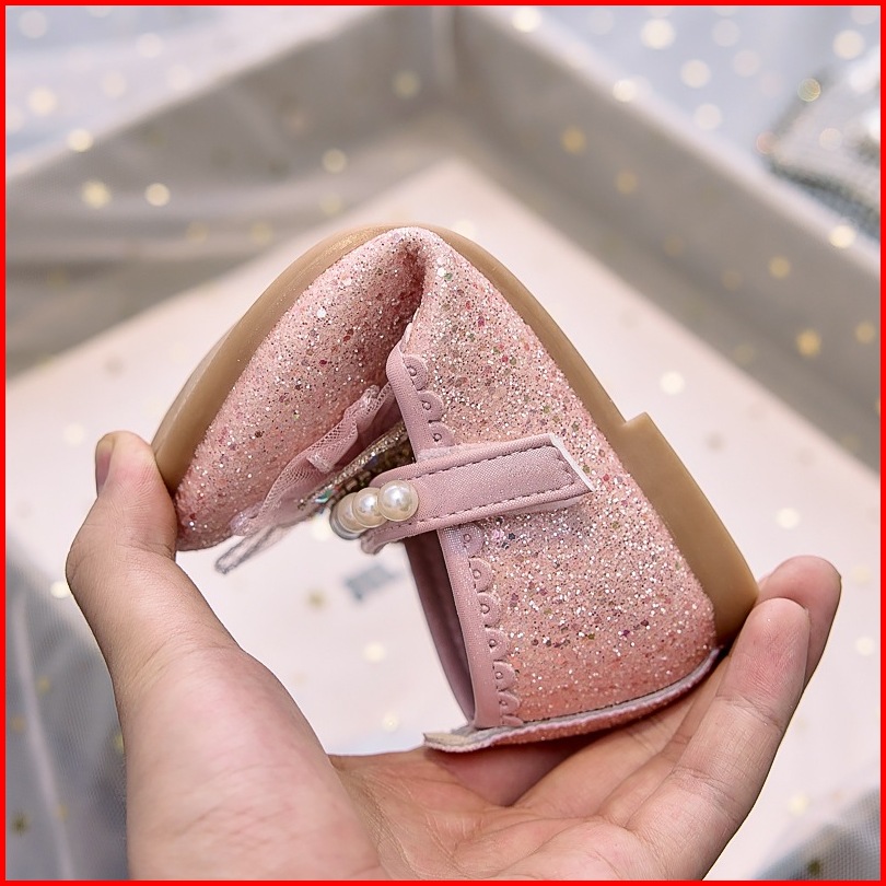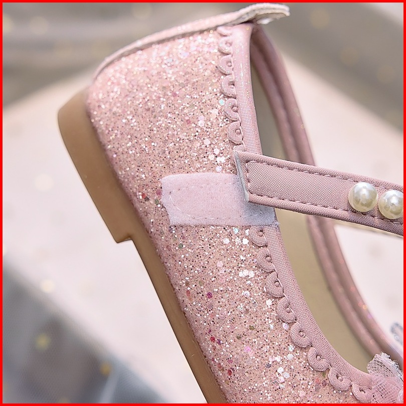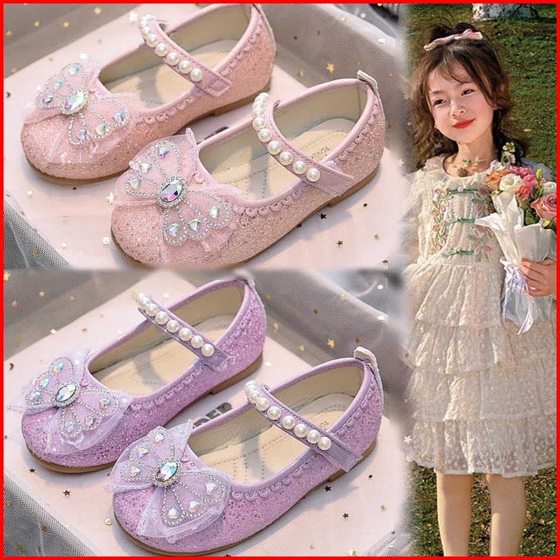 Size 26-33 Kids Sepatu Datar Anak Perempuan Kupu-kupu Mutiara Pesta Anti Selip Gesper Ajaib Shoes