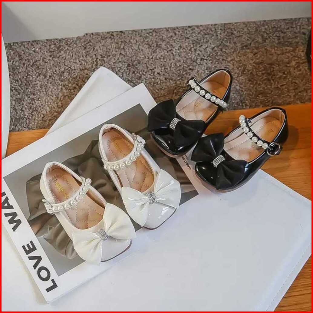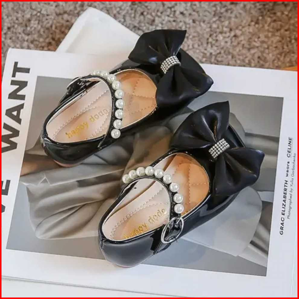 Sepatu Princess Cantik Anak Perempuan Pita Mutiara Mewah Elegan Flats Anak Wanita Sepatu Balet Anak