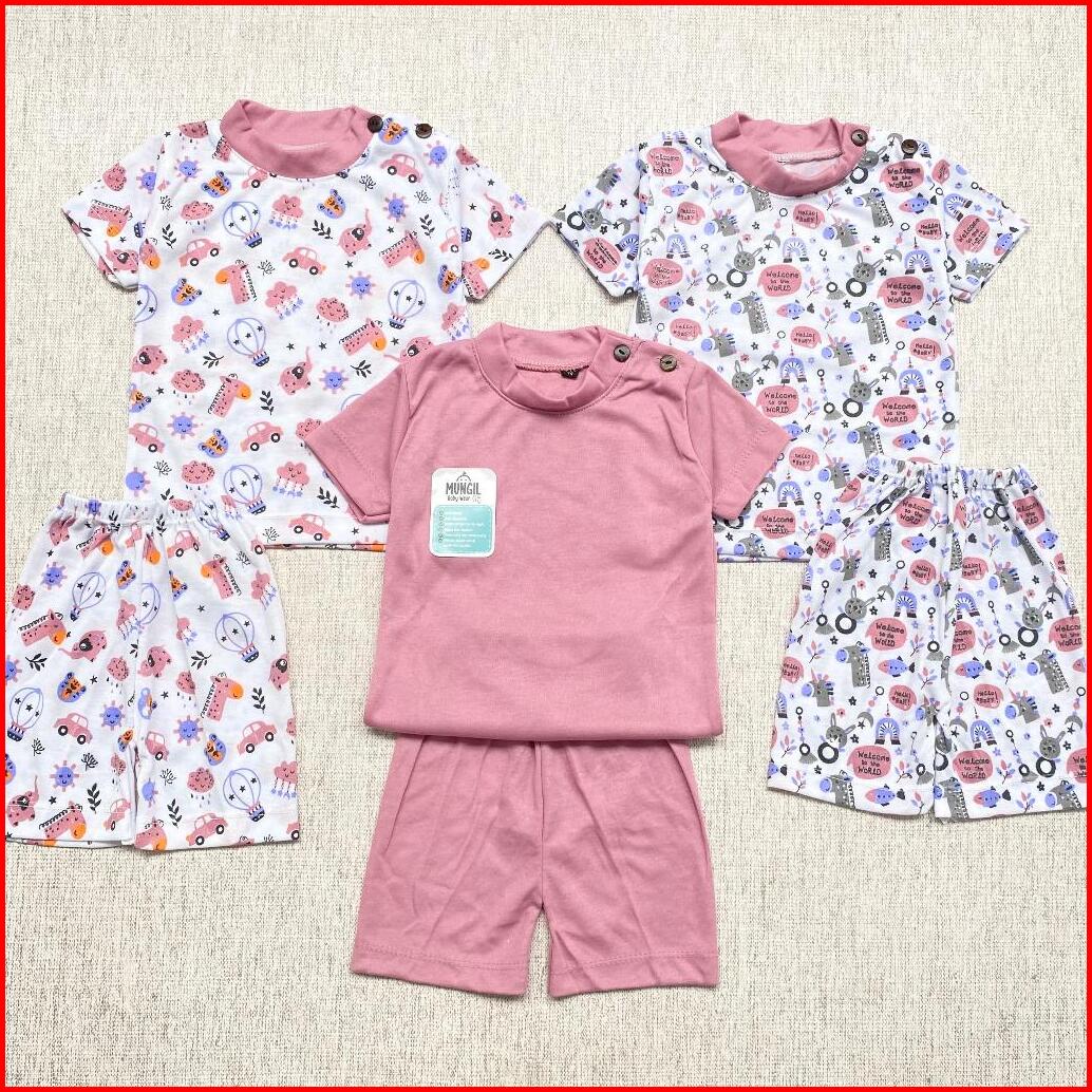 3 Pcs Setelan Bayi Kaos Oblong Bayi Baru Lahir 3 Pcs Kaos Lengan Pendek Celana Pendek - Mungil Baby Wear