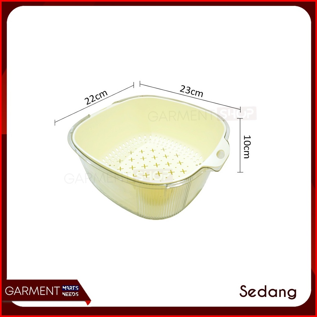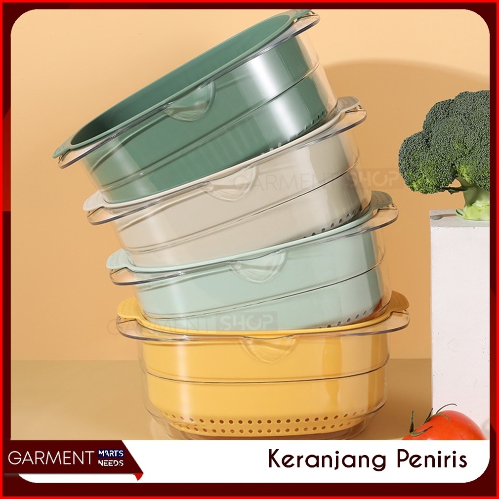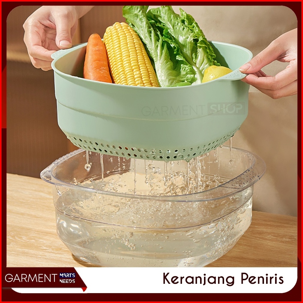 Baskom Tirisan 2in1 Transparan Wadah Saringan Cuci Buah Sayur Keranjang Pengering Serbaguna