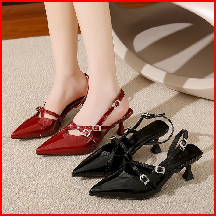 Sendal Heels Tali Sling Back 6cm Wanita Kekinian High Heels Cewek Elegant Sh-118b