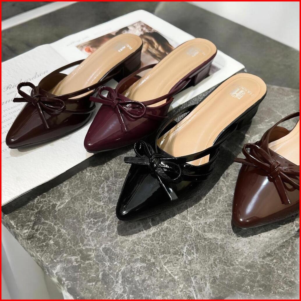 Sandal Hak Tahu 3cm Bapau - Heels Wanita Glossy Hak 3cm - Sandal Wanita Model Selop Slip On Elegan