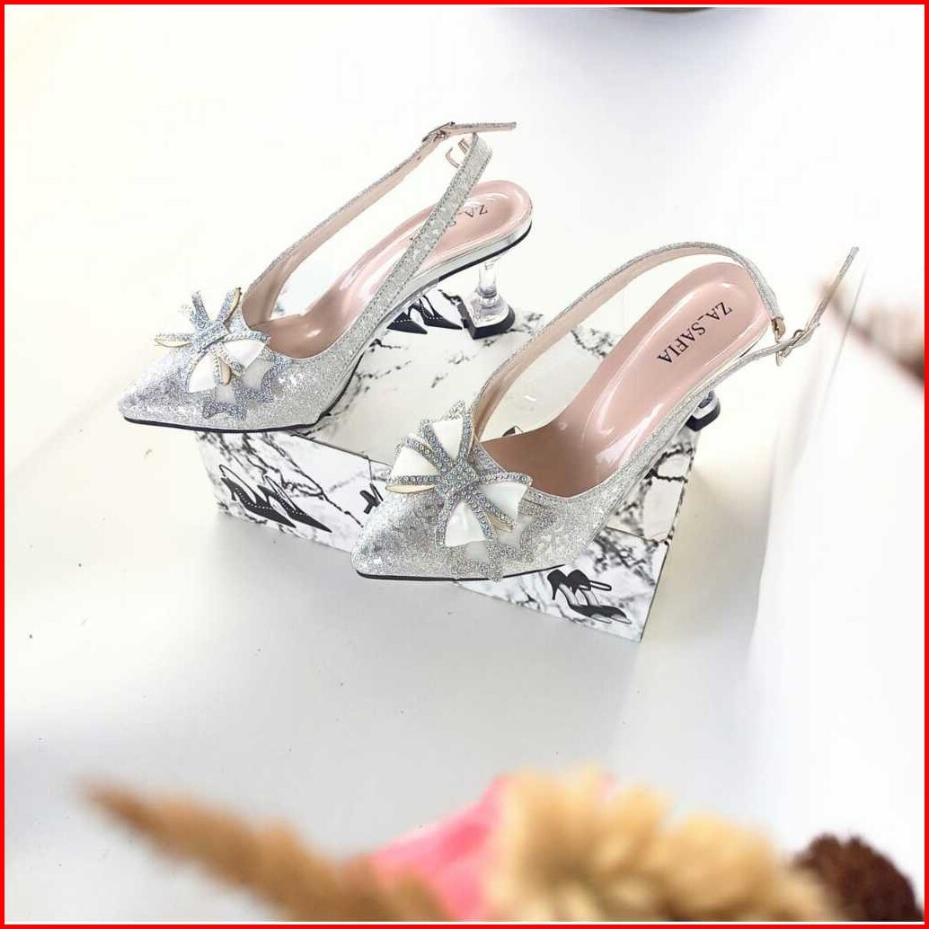 Abzr20 Sn34 - Heels Wanita Elegan Hak Kaca 7 Cm Pita Glitter