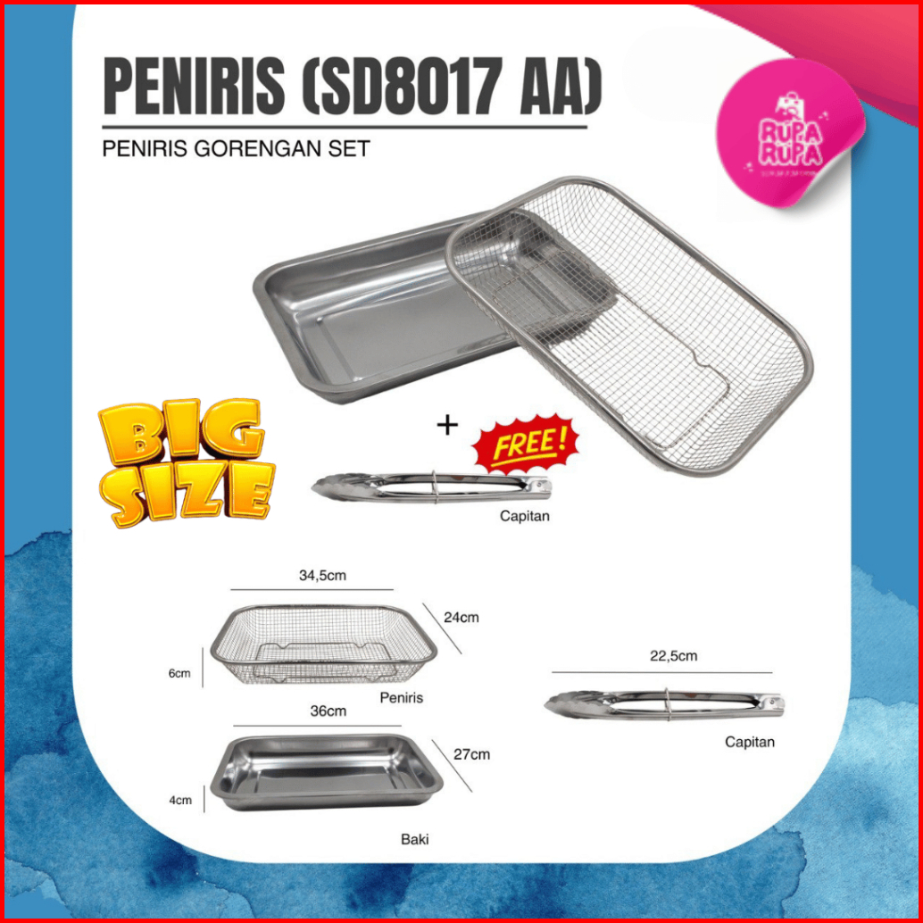 8016 8017 Nampan Stainless Set Saringan Serbaguna Bonus Capitan Bbq Nampan Set Tirisan