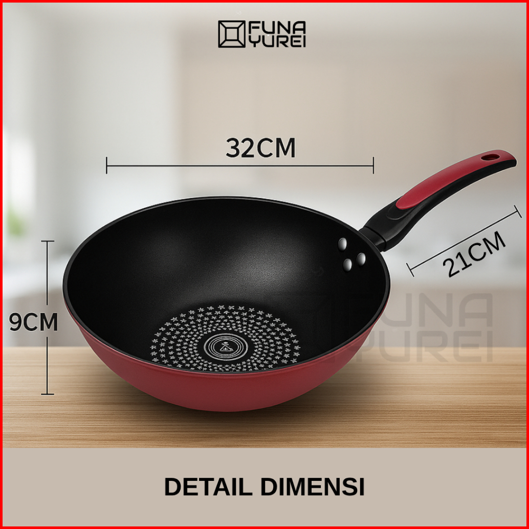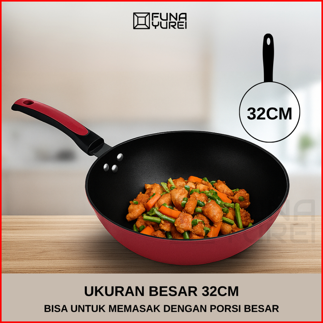 Funayurei B3 Diamond Wok Pan 32cm Wajan Anti Lengket Batu Medis Cocok Untuk Masak Harian Spatula