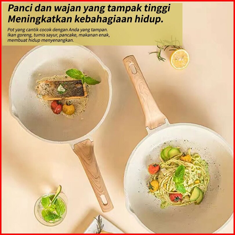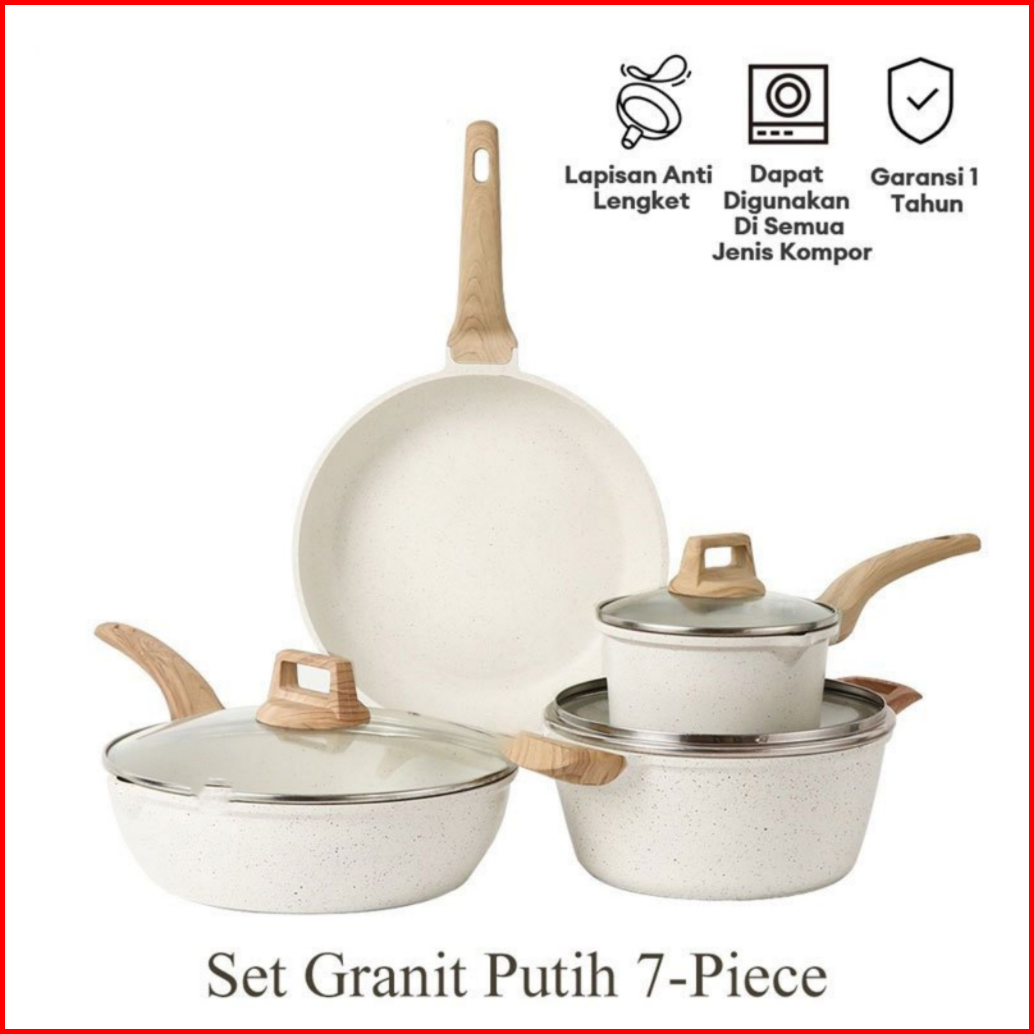 7pcs Putih Granit Antilengket Peralatan Masak Dapur Untuk Semua Kompor Panci Wajan Penggorengan Most Aesthetic Premium N