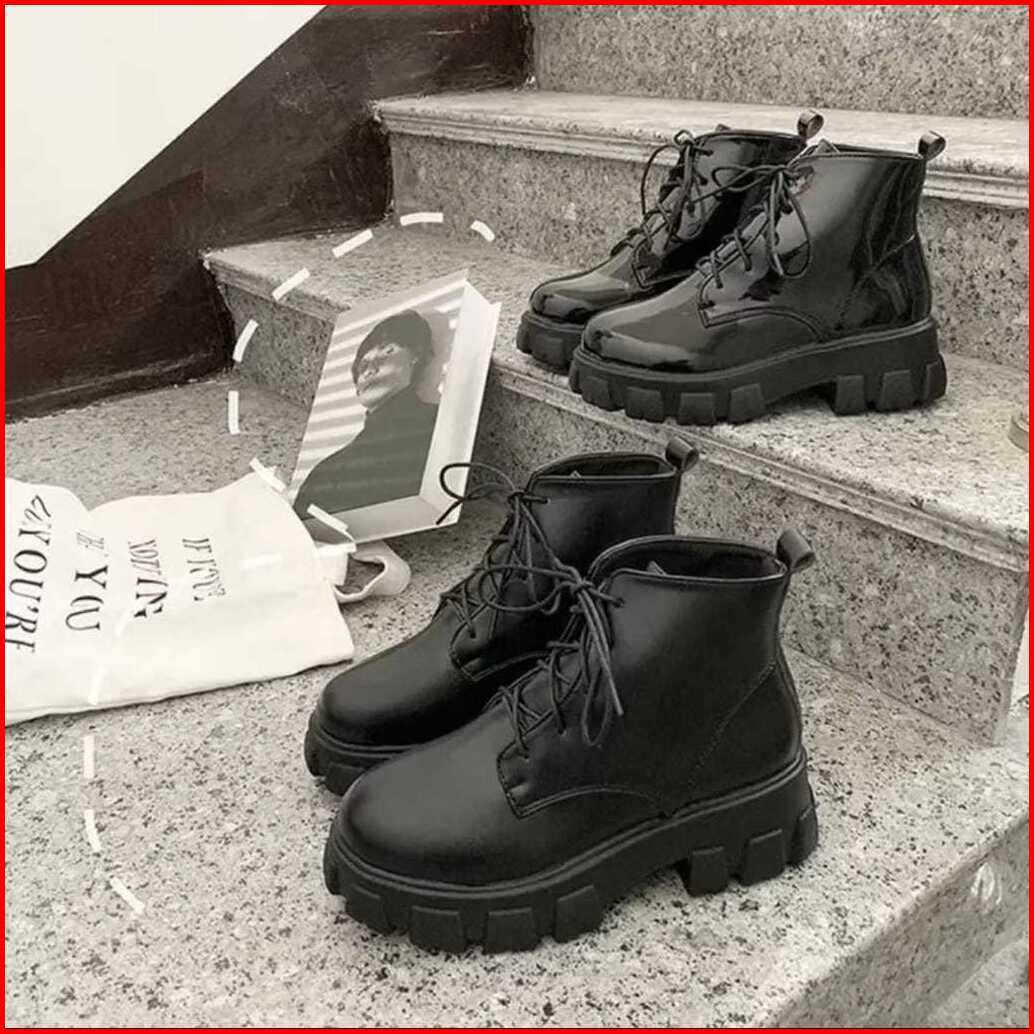 Sepatu Oxford Docmart Wanita Kulit Glossy Hitam Premium Sol Tebal Anti Licin Gaya Trendi Kekinian Kasual