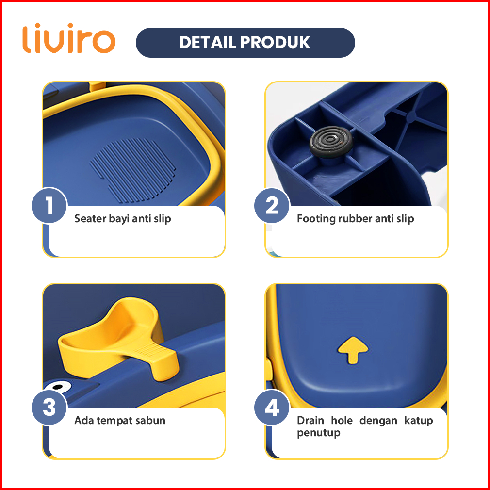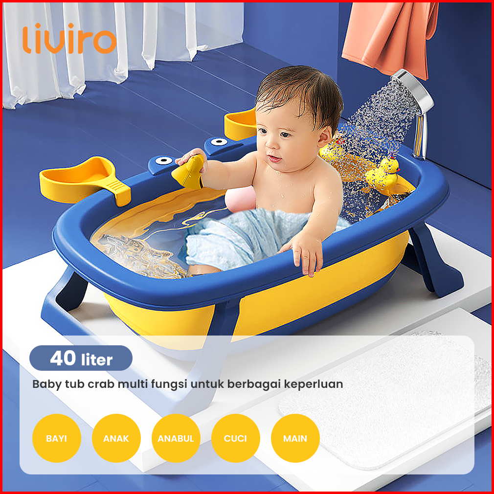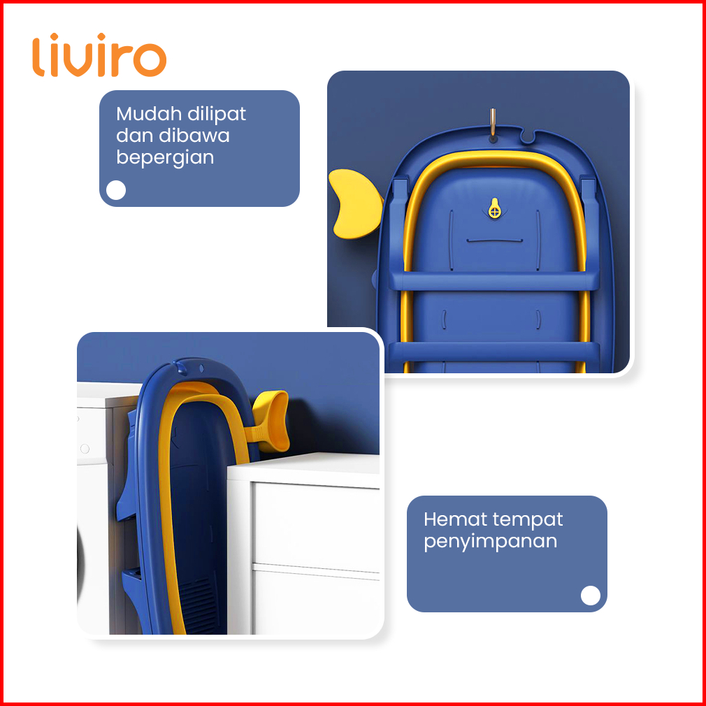 Liviro Foldable Baby Bathtub With Pillow Bak Mandi Bayi Dengan Bantal Portable Premium Quality