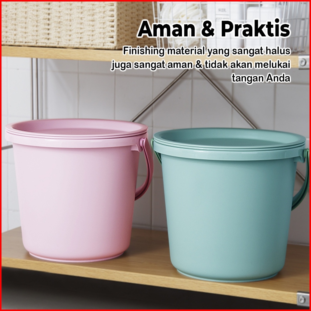 Luxuryparty Pbr-cb Set Baskom Plastik Set Baskom Serbaguna Ember Air Rumah Dengan Tutup Set Ember Warna Pastel Kapasitas