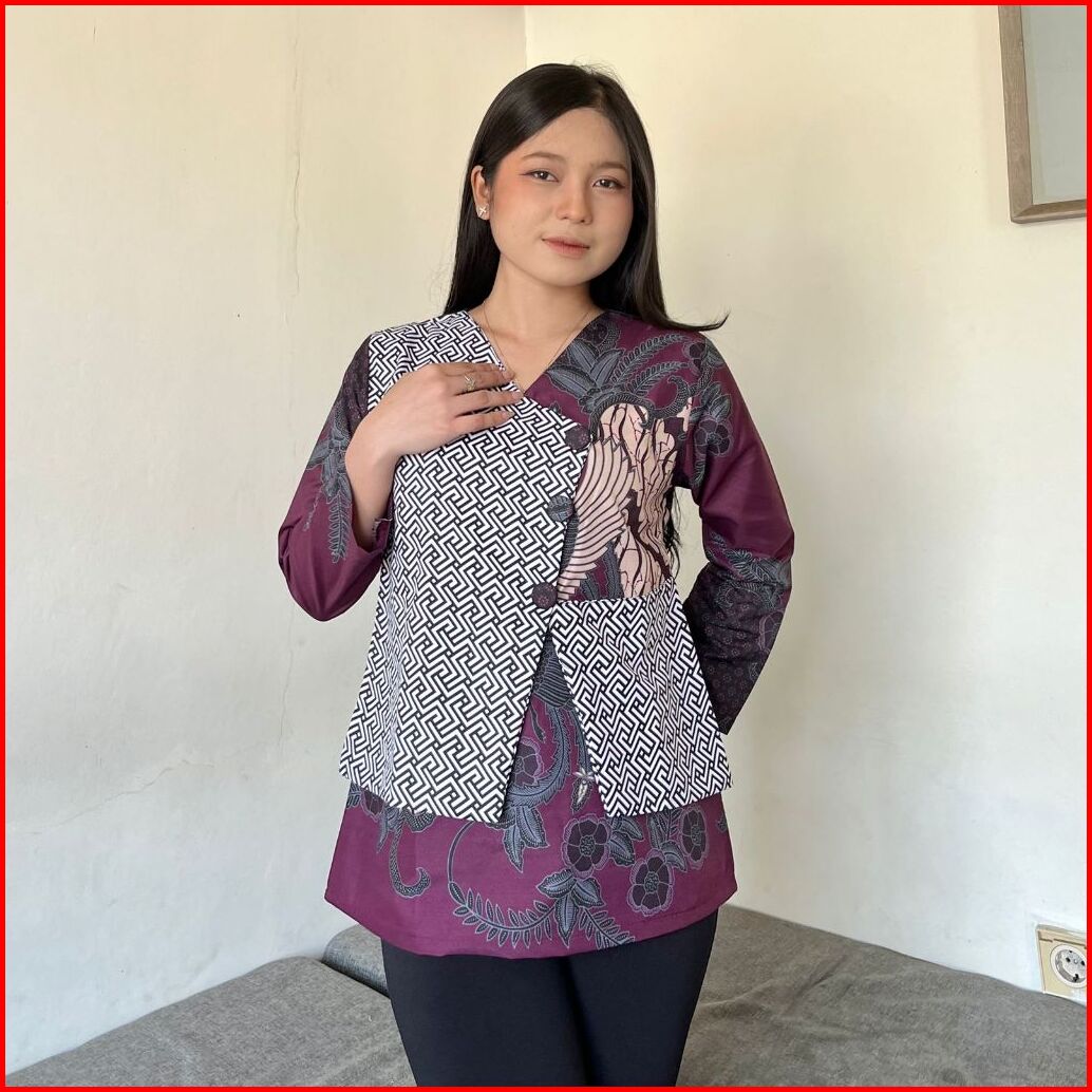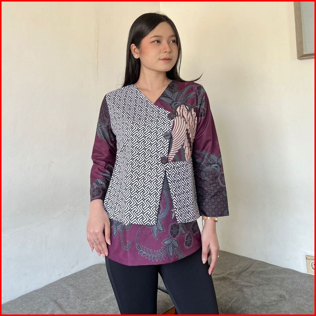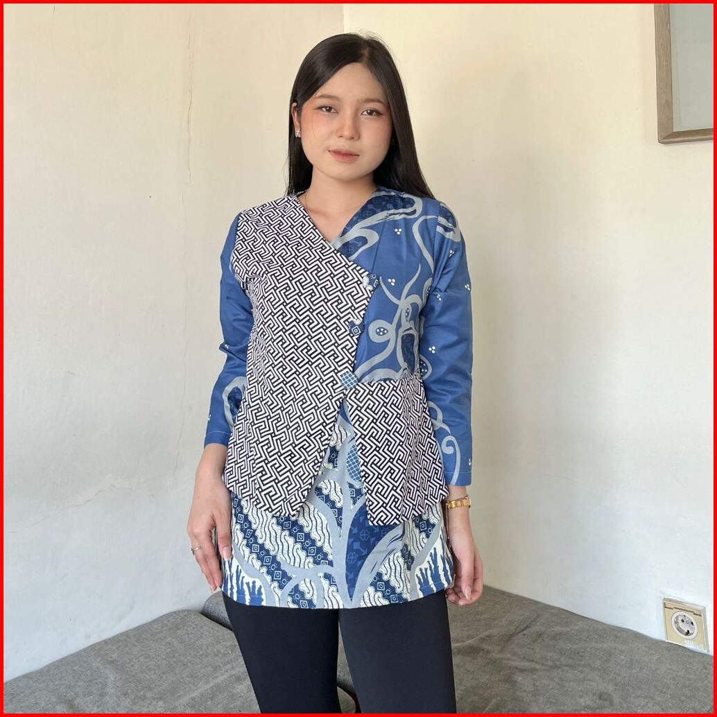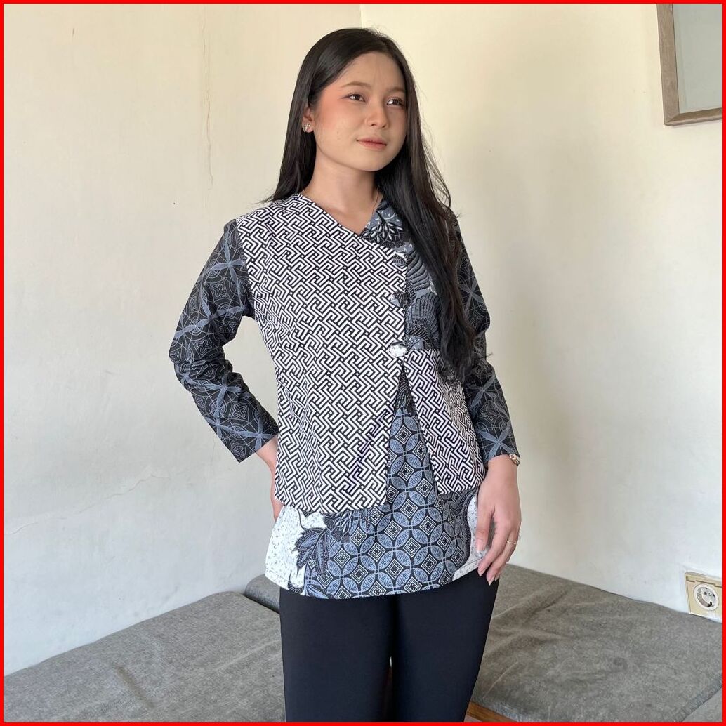 New Syafira Fsh Series Baju Batik Lengan Panjang Blus Motif Bunga