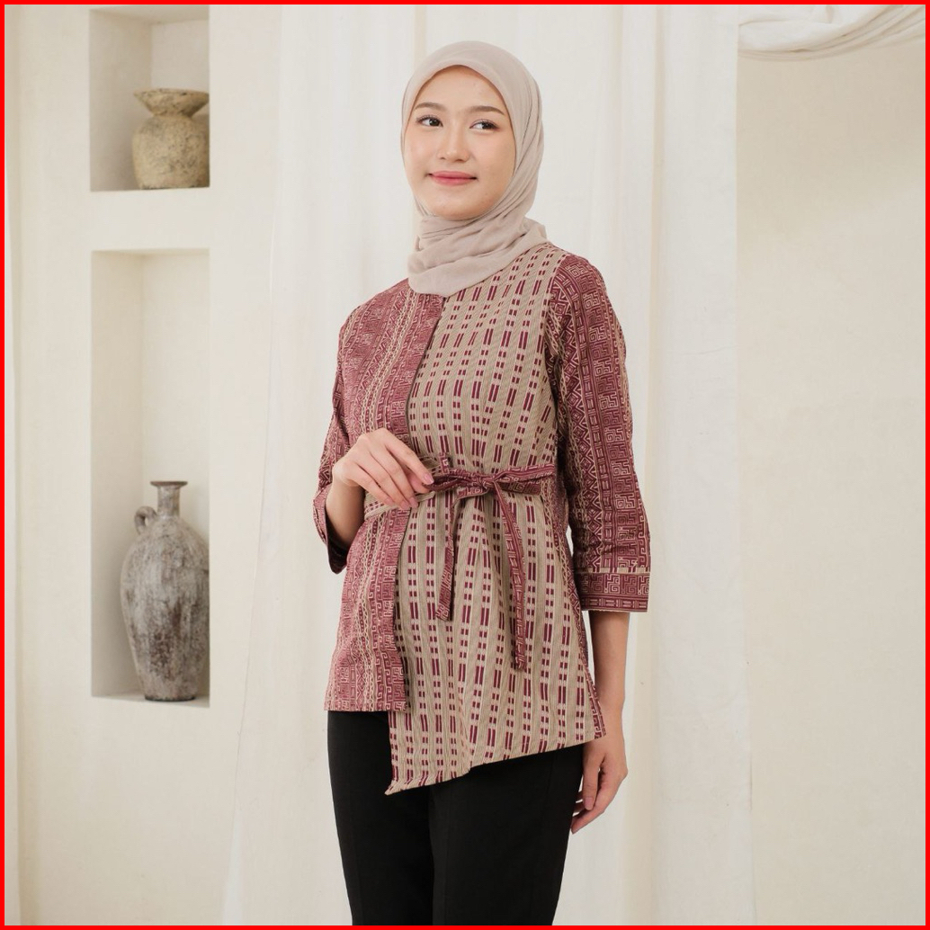 Batik Wanita Asj Sa Hrb026 Kenongo Kemeja Tosca Pendek Seragam Kerja Kuliah