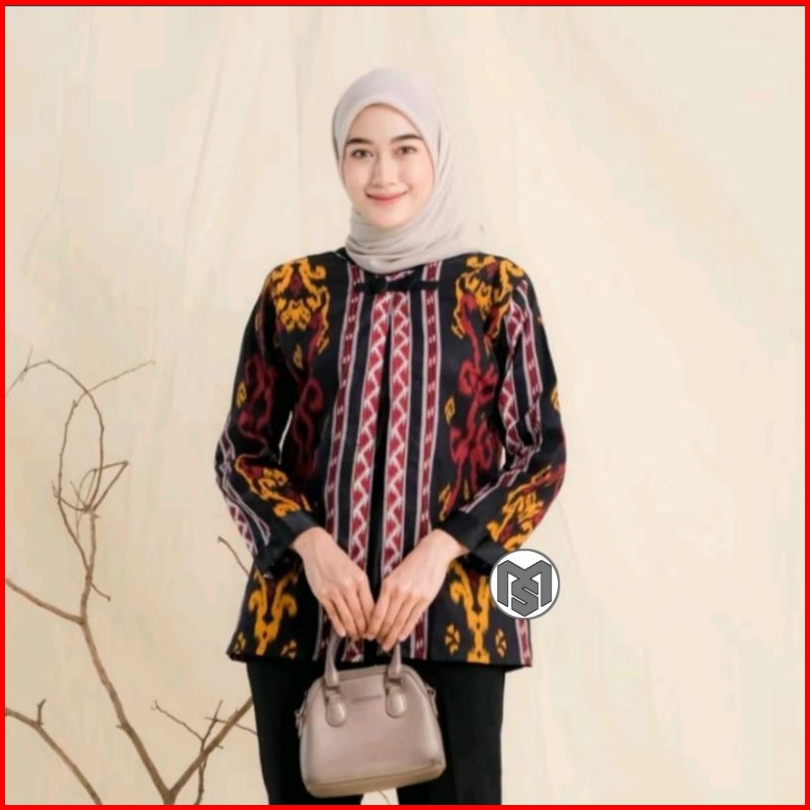 Blouse Baju Batik Wanita Kerja Modern Atasan Batik Bolero Kekinian Katun Nyaman Seragam Formal
