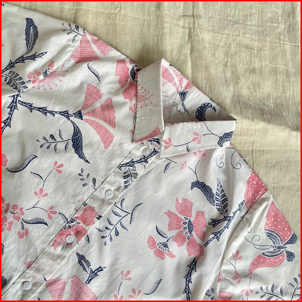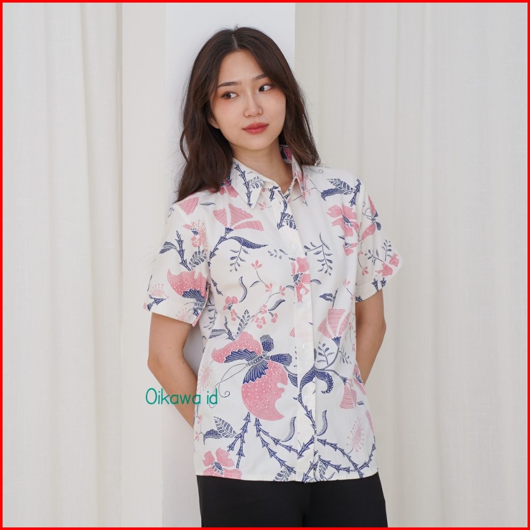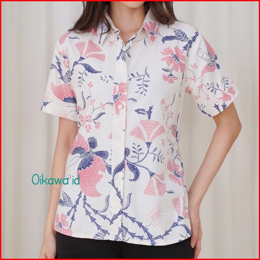 Kemeja Batik Wanita Lengan Pendek Blouse Atasan Kantor Batik Motif Kupu