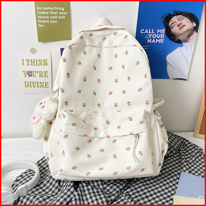 Tas Ransel Wanita Motif Bunga Tulip Backpack Fashion Terkini