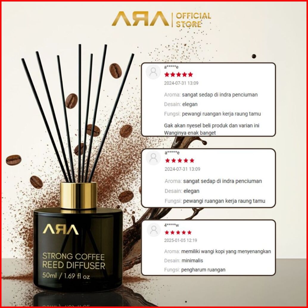 Reed Diffuser Strong Coffee By Ara Pewangi Ruangan Kopi Pekat Tahan Lama Cocok Untuk Suasana Cozy Produktif