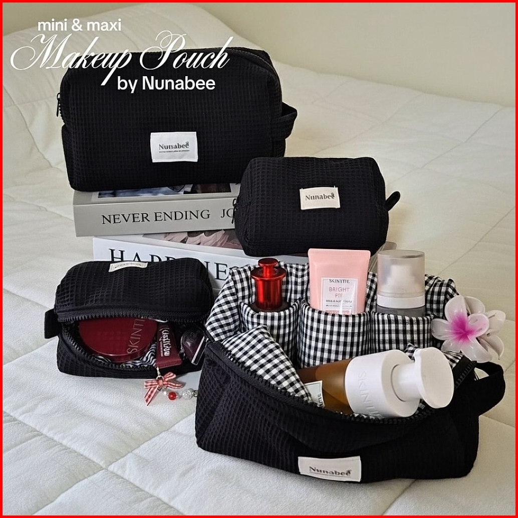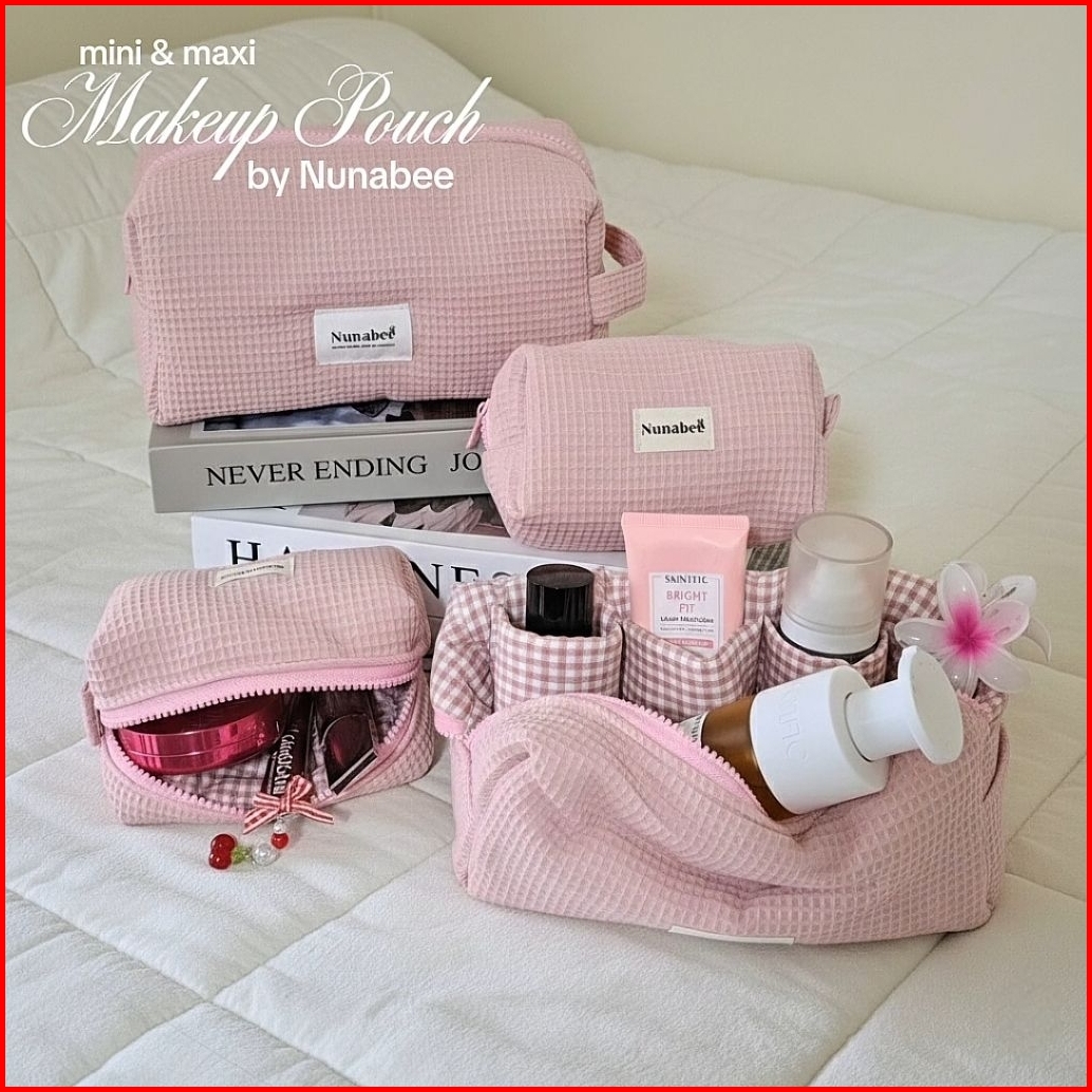 Nunabee Pouch Makeup Waffle Aesthetic Premium Ada Sekat Tas Skincare Kosmetik Travel Organizer