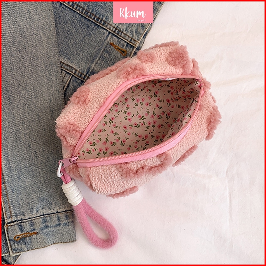 Tas Makeup Lembut Aesthetic Korea Pouch Cosmetic Bludru