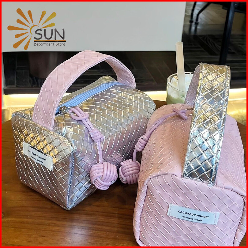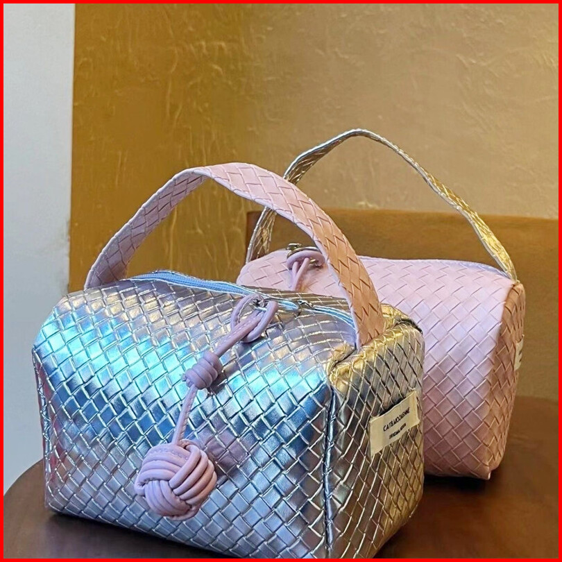 Tas Kosmetik Korea Unik Silver Pink Kapasitas Besar Pouch Makeup Travel Organizer