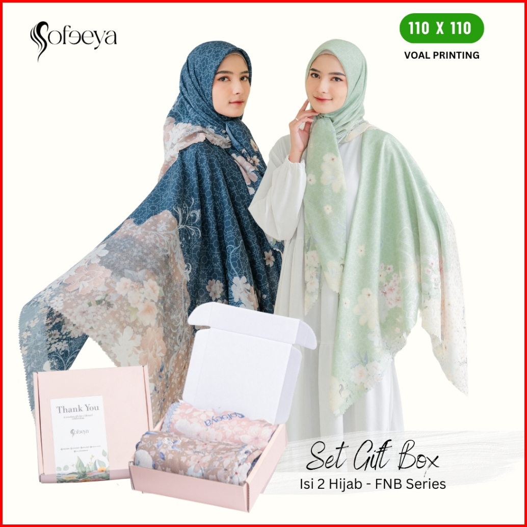 Sofeeya - Hampers Kerudung Segi Empat Ukuran Syar I Standar Isi Paket 2 Jilbab Segiempat Voal Motif Free Box Untuk Souve
