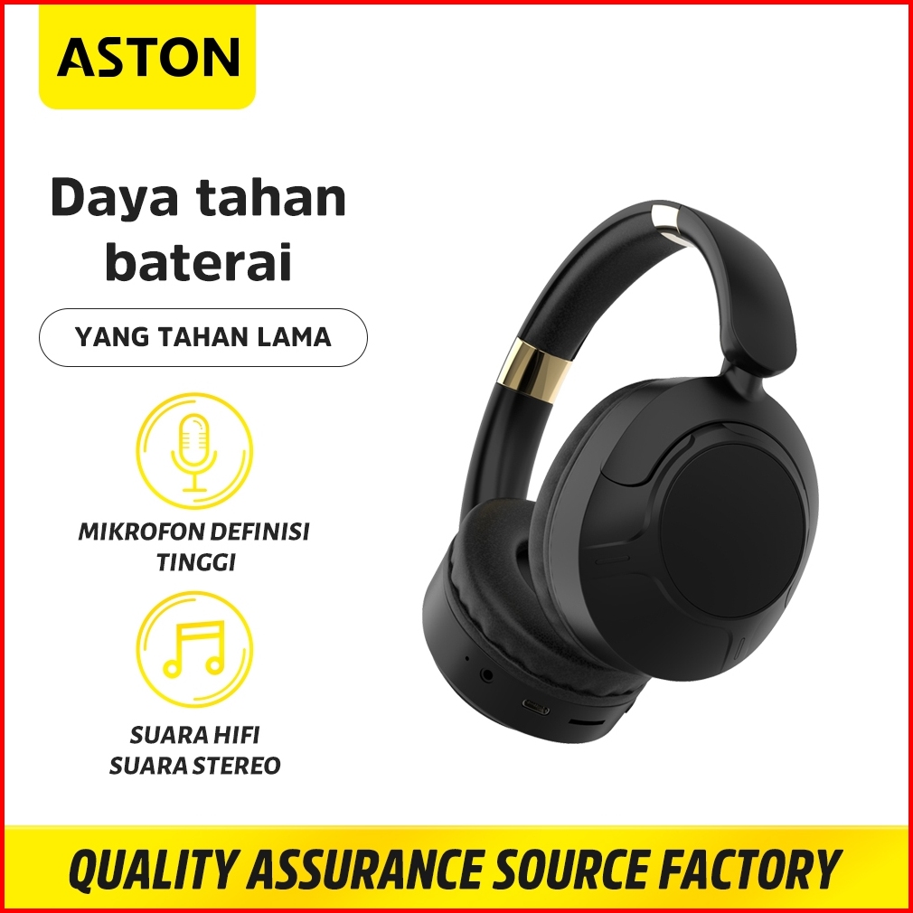 Aston Headphone Bluetooth Wireless Professional At-tw152 Black Super Bass Hifi For Gaming Music Asli