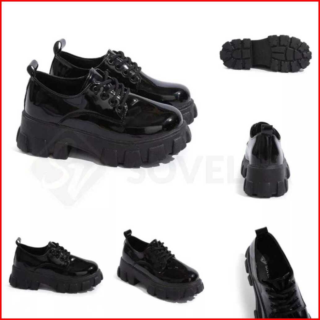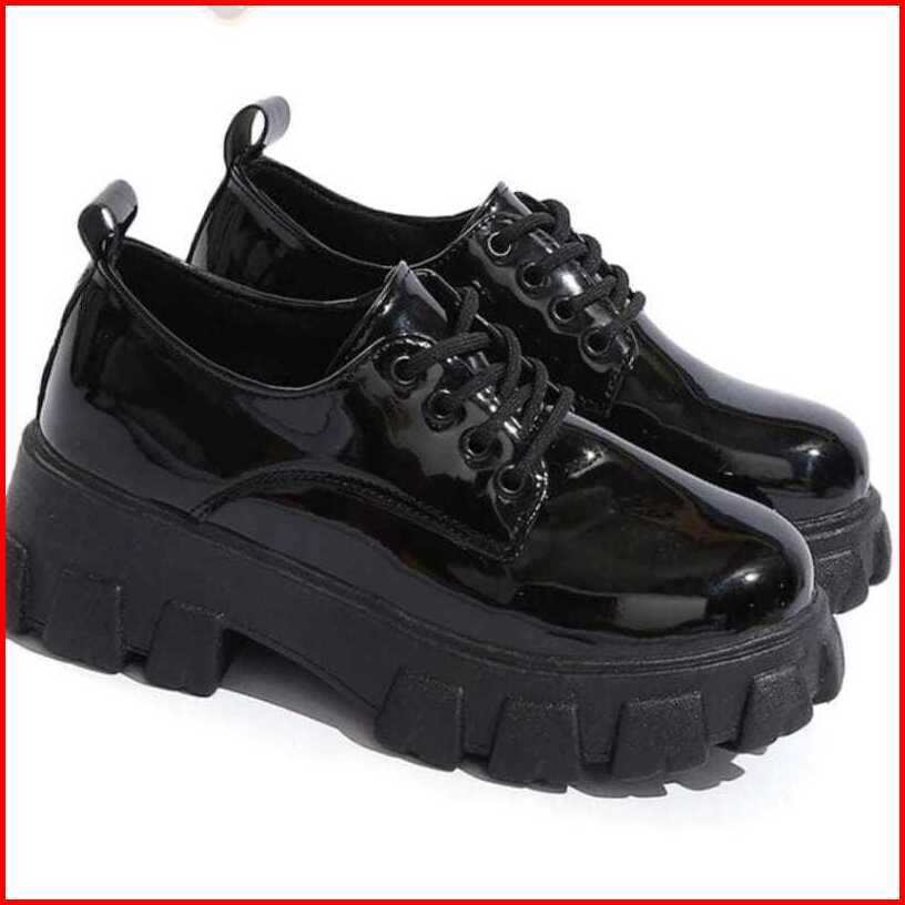 Sepatu Docmart Sneakers Boots Fashion Wanita Korea Style Black Glossy