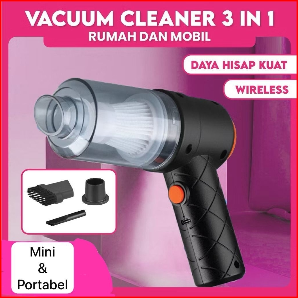 Vacum Cleaner 3in1 Tanpa Kabel Vacuum Portable Alat Penyedot Debu Serbaguna Mobil Sofa Wireless Vakum Recharger Pembersi